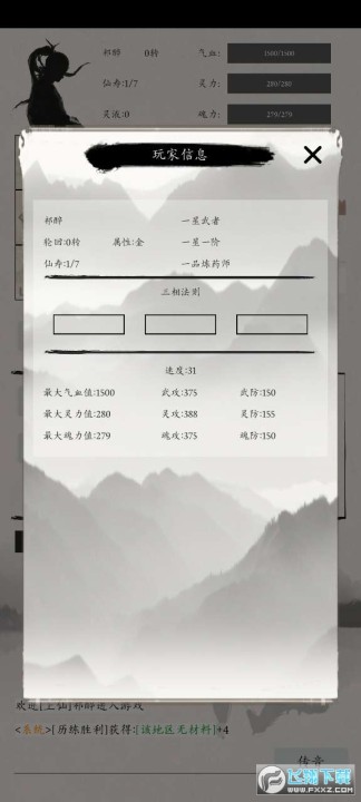 玩家自身有五行属性,根据相生相克,在历练、打坐、或者是携带法则(所谓的武器)、嗑药都有着不小的影响。