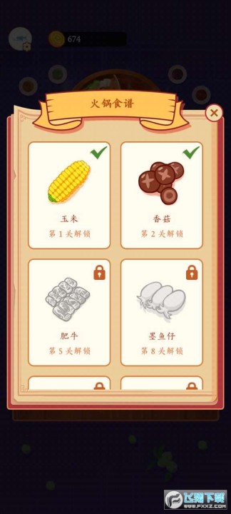 2、一起来涮云火锅,看看谁的菜品多,你需要解锁那些食材才可以吃。