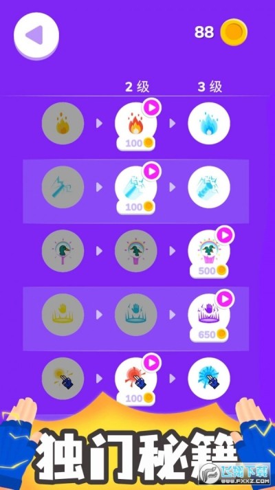 2.你还能通过独门秘籍,专心修炼各种招式,不断升级,达到炉火纯青的水平。