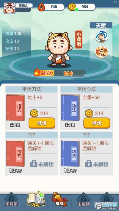 游戏里,可以通过学习各种“武林秘笈”增强小虎墩的实力。这些秘笈不但能够提高攻击力、暴击率,有些还可以为技能附加吸血效果,大大增加小虎墩的续航能力。