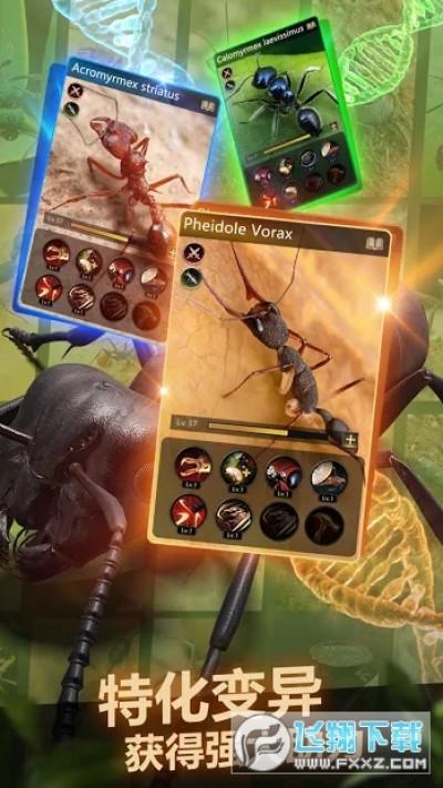 2、可以逐渐发展您的蚂蚁殖民地,带领您的殖民地更好地战斗,快速完成任务,并参与不同殖民地之间的快节奏战斗。