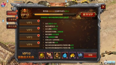 上线赠送VIP10,648元充值,100万绑定元宝,绝版称号