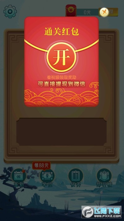 完成关卡挑战系统会奖励红包,分享之后红包加成;
