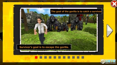 大猩猩必须使用团队合作和通过吃香蕉获得的各种技能来追捕幸存者。