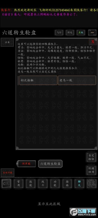 俠客行安卓版是一款文字类修仙rpg手游。游戏中玩家可自由选择出生、根骨、天赋等,你的命运掌控在自己手中,玩法多样,全自动师门,轻松放置。游戏里的活动,任务,副本等丰富多样,玩上一天都不会觉得无聊喔~感兴趣的小伙伴们快来下载游戏体验吧~
