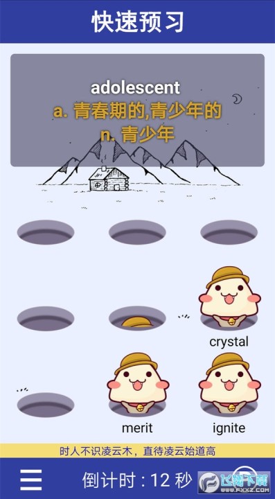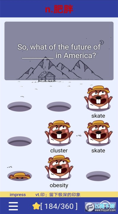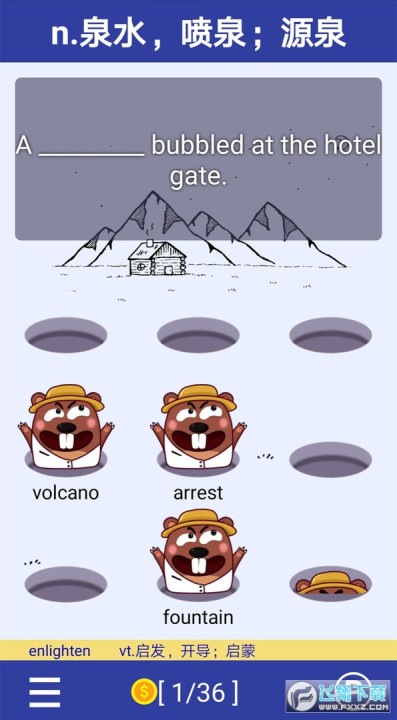 3、通过给定的单词,敲竹鼠,填写正确的单词,游戏考验了玩家的英语能力。
