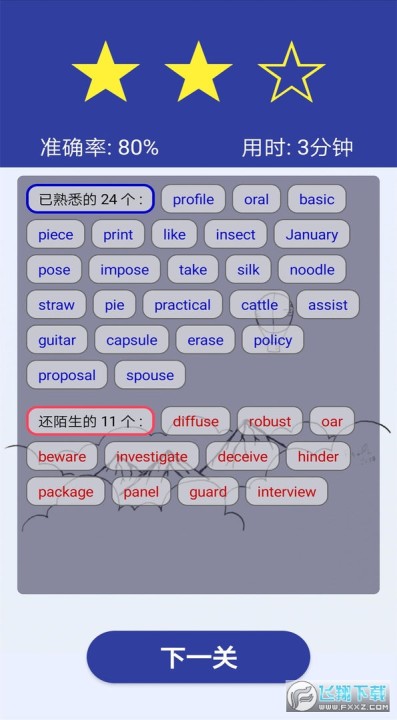 2、简约游戏画面呈现,简单灵活的游戏玩法,让你更轻松背单词;