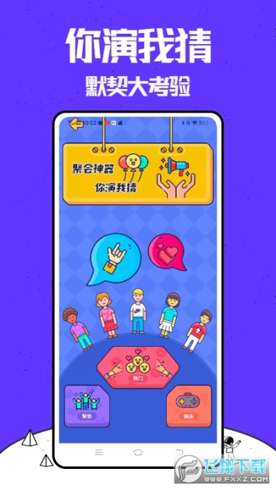《你来比划我来猜》是一款专为聚会打造的多人益智休闲游戏,玩家在游戏中要做的就是根据好友的提示尽可能猜出更多的词,十分考验玩家和好友之间的默契。亲朋友人聚会时,它是活跃气氛的聚会神器,相亲约会时它又成为拉进距离,打破隔阂的破冰神器。快拽上亲朋好友来挑战一下你们的默契度吧!