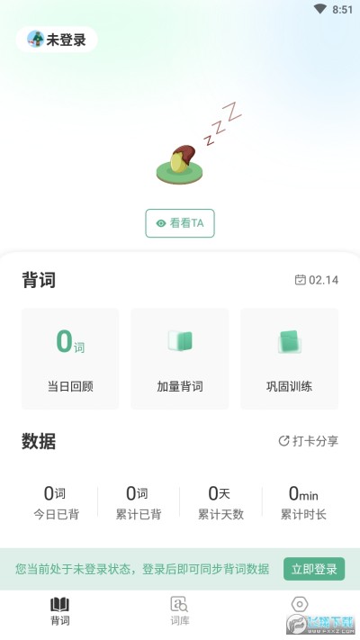1、用户还可以在软件中查看到自己今日新学单词、复习单词、以及已经学习的天数等等的数据信息,很好的掌握自己学习的情况。