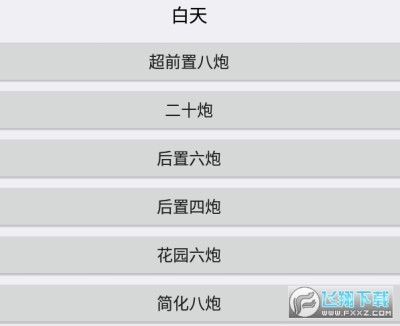 超前置八炮、二十炮、后置六炮、后置四炮、花园六炮、简化八炮、镂空四炮、前置八炮、沙漏十一炮、神之八炮、神之十一炮、十八炮、十二炮挂机、十六炮、十四炮、十五炮、守钉耙十一炮