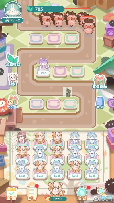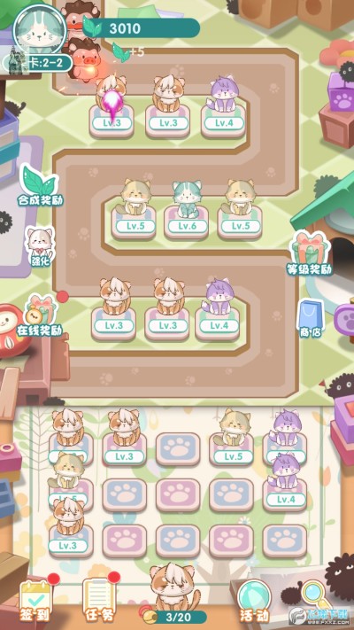 使用猫盒、铃铛等道具,强化猫咪,增强猫咪实力!