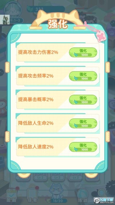 3、使用猫盒、铃铛等道具,强化猫咪,增强猫咪实力;