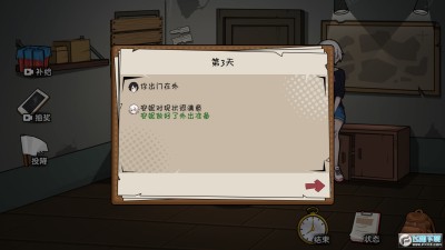 被这个游戏的名字和剧情吸引,感觉很有意思!要在怪病感染的乱世中生存下来,还要想办法搭救一些同伴,还是有点难度的。可以简单的跟大家说几个小技巧,首先背包可以查看自己各种物资还剩多少,一开始出不出去吃都可以,消耗的物资不一样而已。如果有人要赌罐头和水可以尝试赌一把,获得的几率还是蛮大的。解救同伴后可以轮流出去找物资,可以去小区超市诊所等危险系数低的地方探索,虽然东西相对少一些,危险系数高的地方能找到比较特殊的物品,也可以尝试一下。百货大楼一定要解锁,带上背包可以拿到更多的物资。安妮要救(第2天),因为她能造酒,没酒人会疯掉O(∩_∩)O哈哈~。罐头和水不要饿了渴了就马上给,可以再等几天再给,不然很快就消耗完了。自己要安全游戏才能继续哦,这点切记!