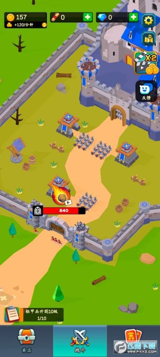 在游戏中你需要表现得像一位国王,指导自己的军团如何征服基地、箭塔与城堡。
