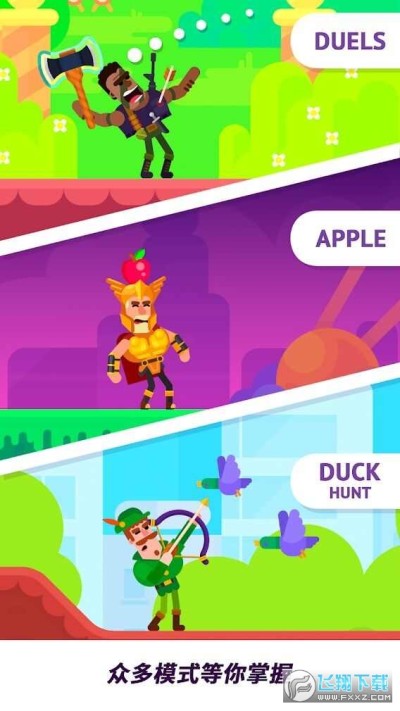 多种游戏模式。射击鸟或水果,在决斗中打败敌人,获取钱财!