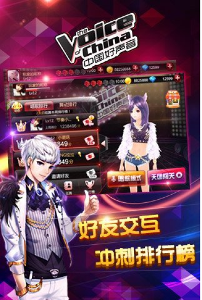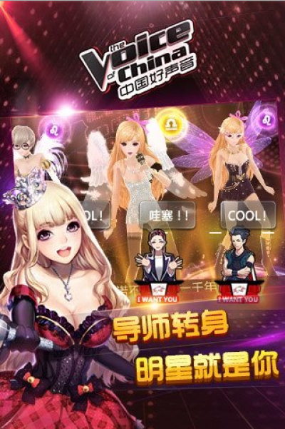 《全民偶像-中国好声音版》是一款融合了唱歌和多人开房跳舞的3D音乐类社交游戏。游戏以唱歌和跳舞玩法为核心,您可以通过游戏的音准系统提高自己的唱歌水平,得到广大听众的认可。游戏为您提供最时尚酷炫的时装、流畅炫目的舞蹈表现、丰富的作品和形象展示空间、围绕核心玩法邀请好友伴舞、与您进行亲密互动。