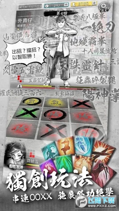串连OX图案,施展外功绝学。出招?挡招?需要因应战局变化而进行攻防取舍。