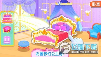【奇妙梦幻城堡】中,共有5处区域需要装修:户外花园、宴客大厅、公主卧室、玩具房、泳池。