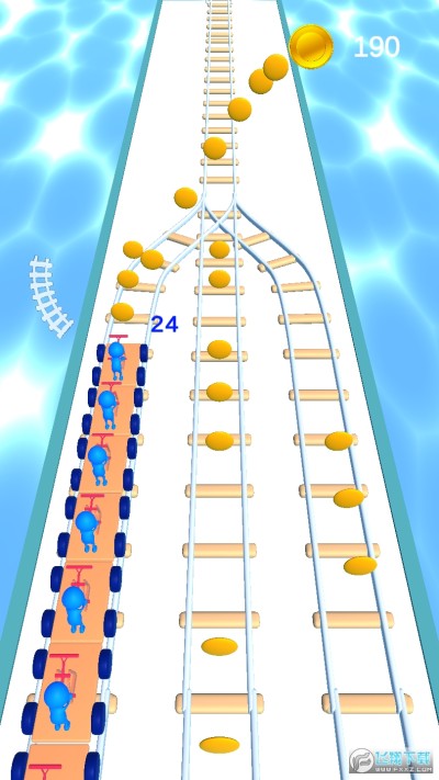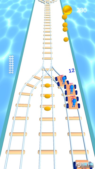 在轨道上面进行前进,赛道上面还有很多的道具金币