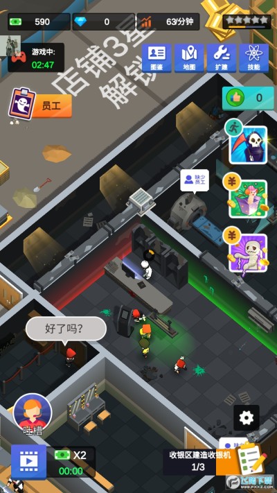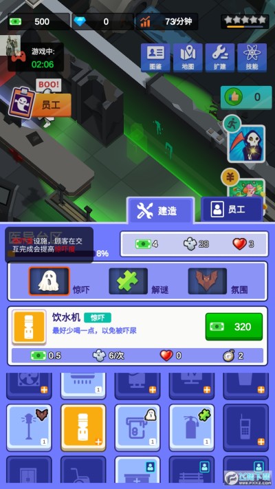 你可以在游戏中观看员工的日常工作,但要注意员工的情绪,这会影响整个公司的收入。