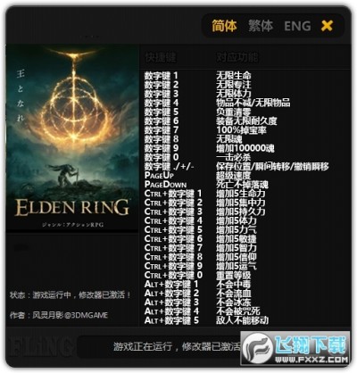 艾尔登法环修改器风灵月影是专门为魂系动作游戏巨作《艾尔登法环》所制作的多功能游戏辅助工具,具有无限生命、无敌、一击必杀、快速游戏等等丰富的辅助功能,让玩家能够轻松击败每一个强大的敌人,不仅能够享受通关的快乐,还能够轻松练习游戏。