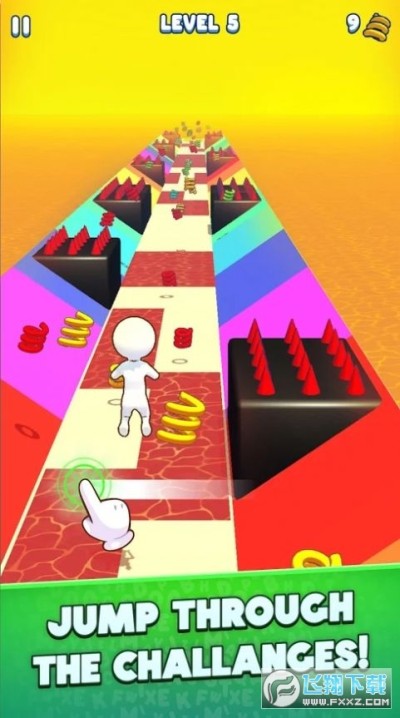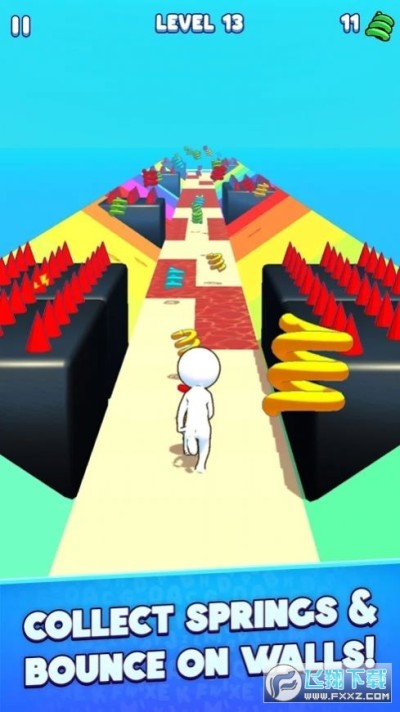 2、玩家跑酷的过程中也是会遇到各种各样的小怪物,玩家可以跳跃这些怪物继续向前跑酷,游戏内的玩法也是非常自由;