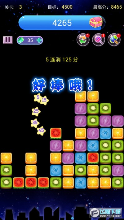 1、点击两个或更多相同颜色的星星 - 没有时间限制,但是每一关有目标分数。