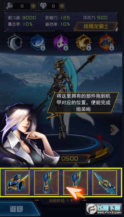 4、不断战斗升级机甲的各项属性,收集各种珍贵材料,来让你的机甲所向披靡。