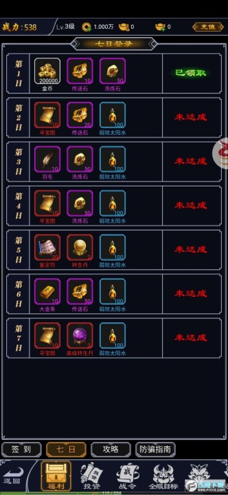 温馨提示:每天的闯关务必完成,免费进入,金币多经验高装备好,可任选难度,散人前期选简单模式即可。