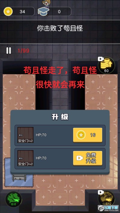 这是一款非常神奇的塔防游戏,游戏性很好,和最近比较热的凶鬼宿舍差不多,玩家需要在敌人攻击前顺利到达门口,这样才能处于安全的位置,丰富的游戏武器,抵御危险的鬼魂大军!