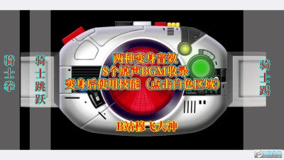 假面骑士black帝王石腰带变身模拟游戏是一款模拟假面骑士Black模拟器变身游戏,游戏中内置教程,有待机音效,两个变身音效,收录了8个原声BGM,还原假面骑士Black变身模拟玩法内容,对游戏感兴趣的话不妨点击下载试试!