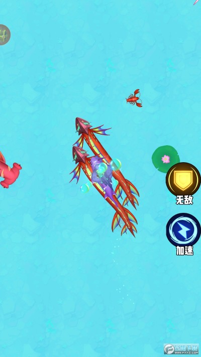 4、当你面对比你强的对手,比如:锦鲤,甚至鲨鱼。你一定要躲它们远远的。只要轻轻一碰,你就会退回上一个等级的形态,最终是小蝌蚪。如果在小蝌蚪形态下,再被碰一下,游戏结束了,你也就输了。结束的时候,游戏会记录你最高纪录的形态。