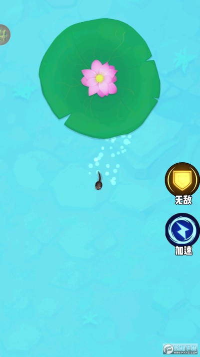 1、开始的时候,你的游戏角色就是小蝌蚪,操作方法也很简单,只需要手指按着屏幕,控制小蝌蚪的游走方向就可以。