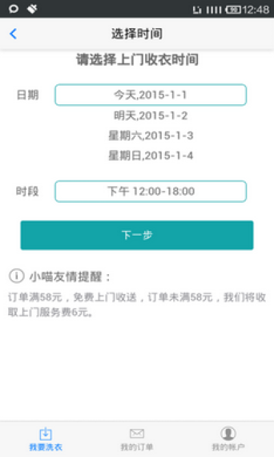 1.只需手机通过APP/微信下单、预约时间地点,就会有专业的服务人员按时上门收取衣服;