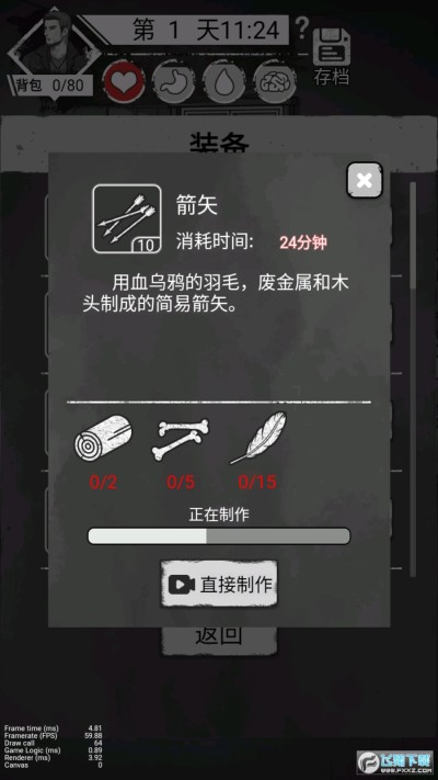 3、可制作武器、酒精、床铺、火炉等一切有助于你生存的东西;