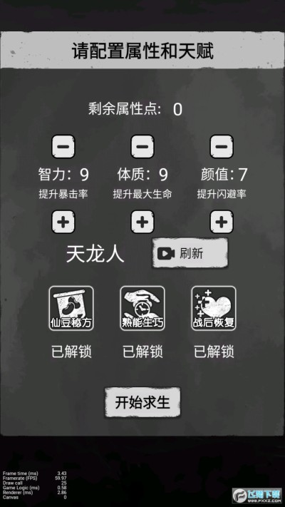 5、每次开始新游戏时,都将随机生成世界与角色;