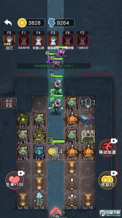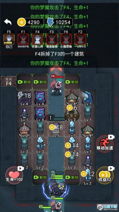 攻守兼备(猛鬼宿舍)免广告破解版是一款全新的玩法的猛鬼宿舍塔防游戏,玩家将在一个循环圈里建造防御塔,抵御别人召唤的不同噬梦者,并建造各种噬梦者建筑进攻你的邻居,破坏敌人的建筑获取血量,存活到最后赢得游戏的胜利,新颖的玩法模式快来体验吧!