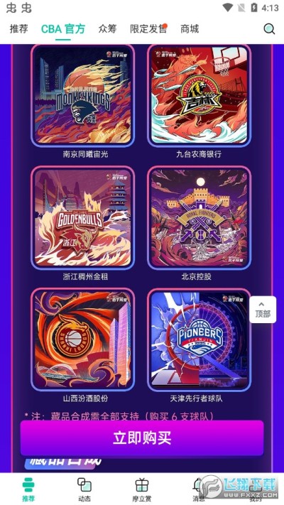 *购买此档位将获得以下六只CBA俱乐部logo数字藏品:
