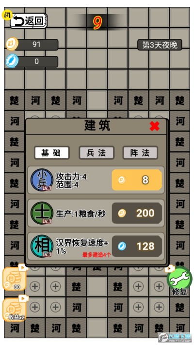 4、刺激的游戏塔防模式,采用了文字与塔防加上象棋的元素设计而成,有点类似之前的躺平文字大冒险这款游戏。