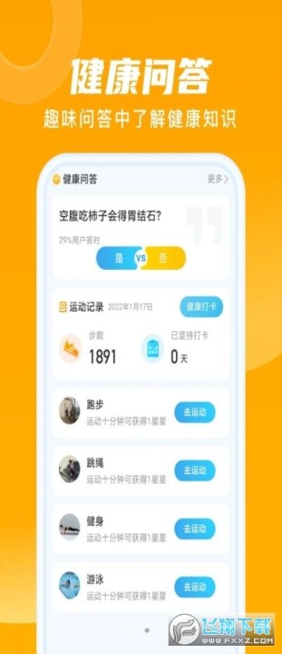 这个软件是一款非常好用的运动软件,可以同步步数信息,帮助用户实时在线记录自己每日行走的步数,支持兑换金币。金币可以兑换现金,让用户通过运动的方式获取额外的金币红包,参与各种任务就可以获取红包。任务轻松简单,实时在线记录行走步数,非常精确,让你知道自己每天的运动量,了解健康知识。