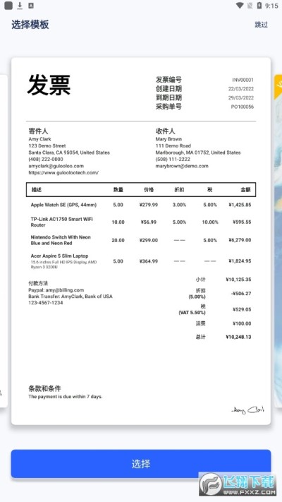 2、使用这款发票生成器和估价单制作器,您可以创建专业发票和估价单;