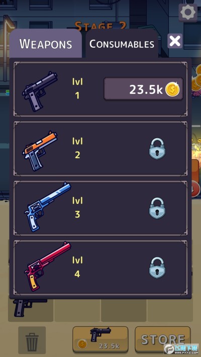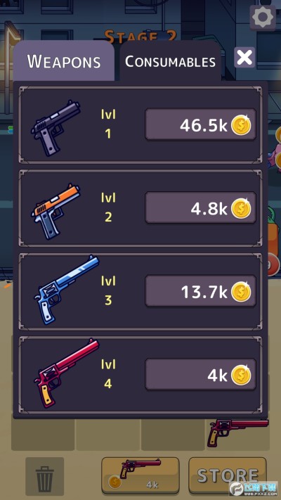 在商店(STORE)中购买武器时金币使用强加,注意武器栏如果是满的无法进行购买操作,请及时合成武器!