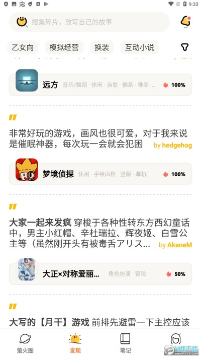 游戏中,一张唯美的CG,一段独特的结局,一个金灿灿的成就,都能赋予我们极大的满足感。在萤火圈,你也可以将这些闪光点一一记录在「笔记」里,留住这份触动和快乐。