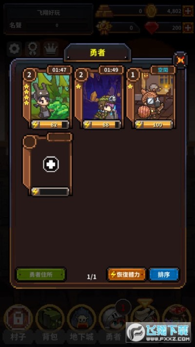 2、三大副本,超多关卡,招募勇者收集材料,获得的资源来完成村民们的需求吧。