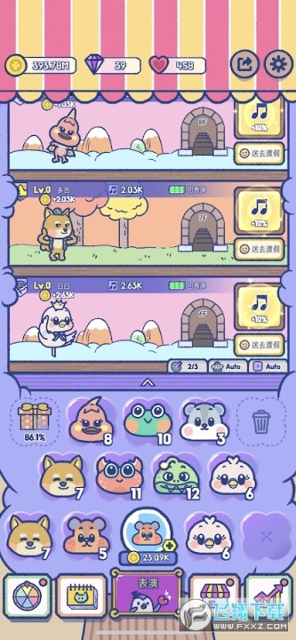 1、用自己喜欢的动物创建自己的团队阵容,在与企鹅老板一起表演的同时。