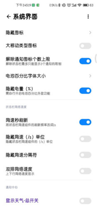 ④状态栏美化、隐藏不想看到的图标等等。