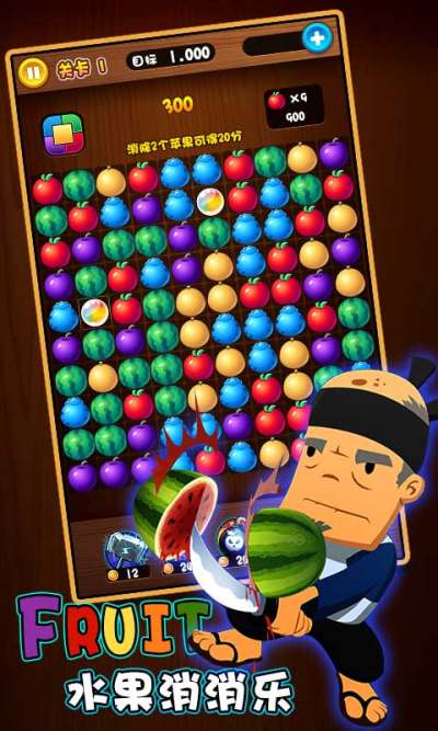 2015最创意的消除游戏来啦,水果消消乐将水果忍者和消消乐相互结合,这可不是1+1=2那么简单,双倍的创意等于更多的快乐,玩家在消除成功后必须完成切水果考验,非常有趣哦!