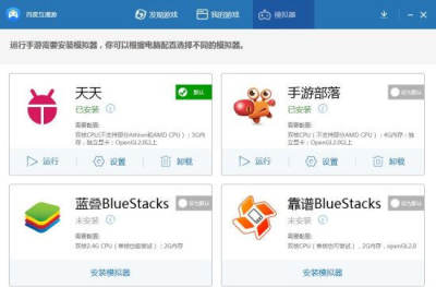 支持高性能的天天、手游部落模拟器及兼容性最高的BlueStacks模拟器