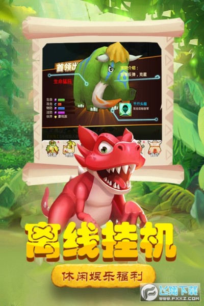 【召唤异兽 征战石器大陆】《丛林战役》是一款即时策略性游戏,集养成,收集,进化,闯关,竞技等多种玩法,一百多种怪兽自由选择培养,运用不同的策略搭配不同的阵容,收集宠物蛋召唤你的神兽,指挥他们向敌人发起冲锋,突破各种关卡,争夺地图资源,对战强大的boss。战斗简洁流畅,操作简单,可肝可佛,更多精彩快来游戏中体验吧!