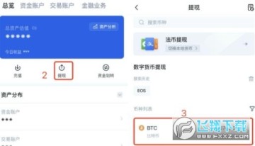 1、在欧易APP首页,点击【资产】—【提现】,选择提现币种BTC。
